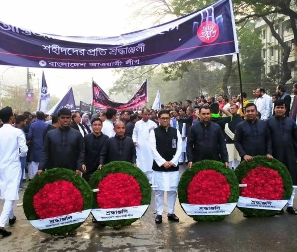 মহান ভাষা আন্দোলনের শহীদদের প্রতি শ্রদ্ধা জানাতে বাংলাদেশ আওয়ামী লীগের প্রেসিডিয়াম সদস্য জনাব আব্দুর রহমানের নেতৃত্বে দলের কার্যনির্বাহী পরিষদ শহীদ বেদীতে পুষ্পস্তবক অর্পণ করেন। উপস্থিত ছিলেন বাংলাদেশ আওয়ামী লীগের দপ্তর সম্পাদক ও প্রধানমন্ত্রীর বিশেষ সহকারী ব্যারিস্টার বিপ্লব বড়ুয়া।
